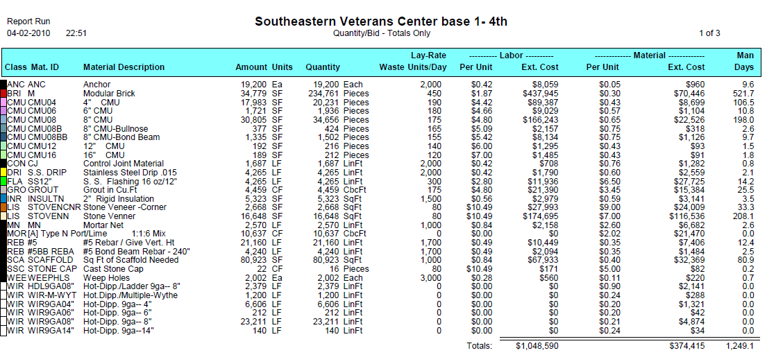 Mason/Laborer Cost Breakdowns