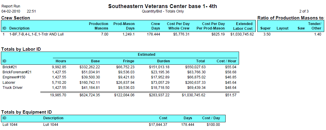 Crews & Equipment Breakdown