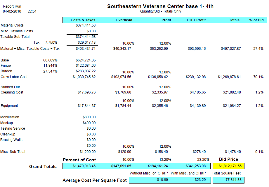 Misc. costs such as mobilization, testing and mockups.